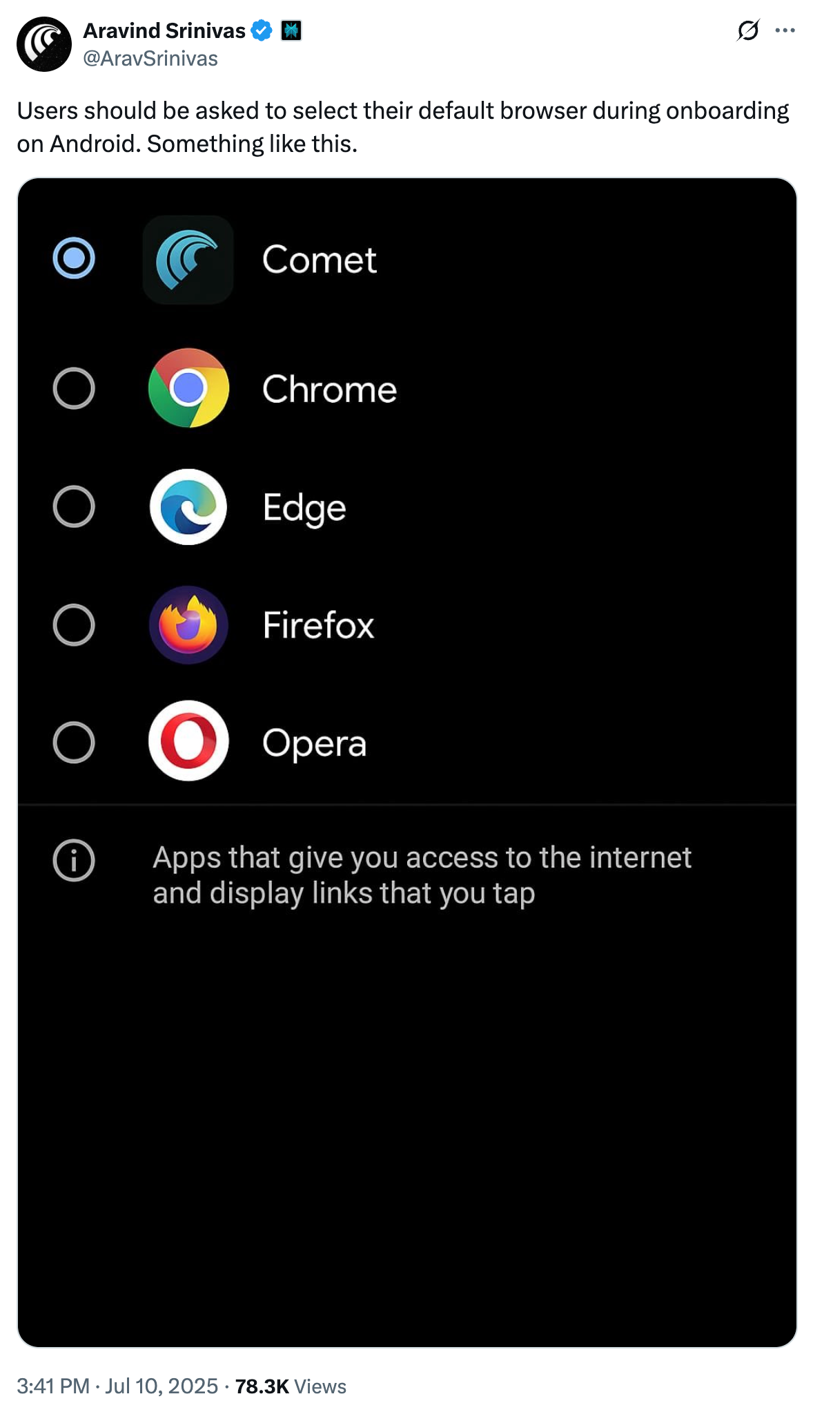 — Aravind Srinivas (@AravSrinivas) July 17, 2025