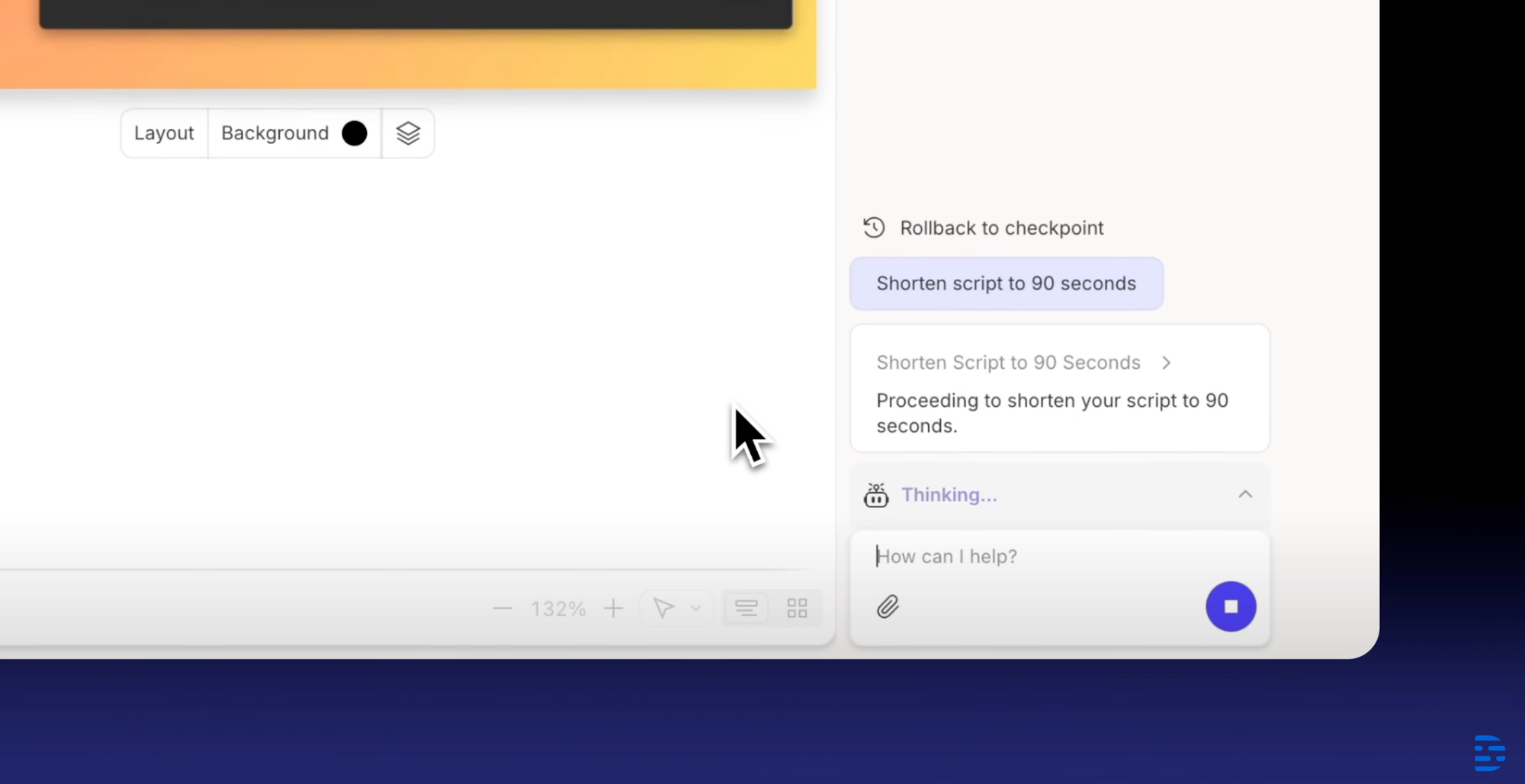 Möglich ist das, weil Descript bereits bekanntlich textbasierte Bearbeitung von Audio- und Videoinhalten anbietet. Das LLM-Feature kann über diesen bestehenden Weg auch direkt die Inhalte ändern.