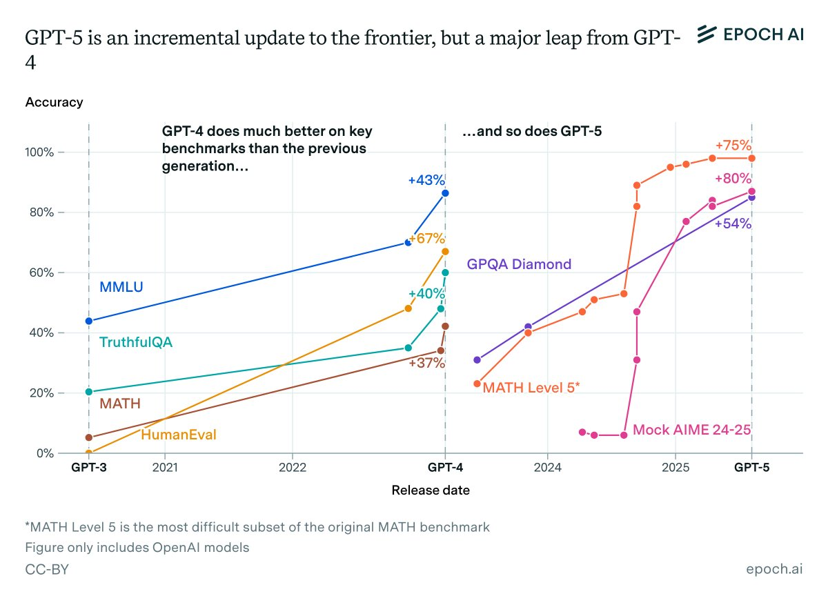 Der Unterschied zwischen der ersten Version von GPT-4 und dem heutigen GPT-5-System ist riesig. Und zwischen beiden liegen lediglich zwei Jahre.