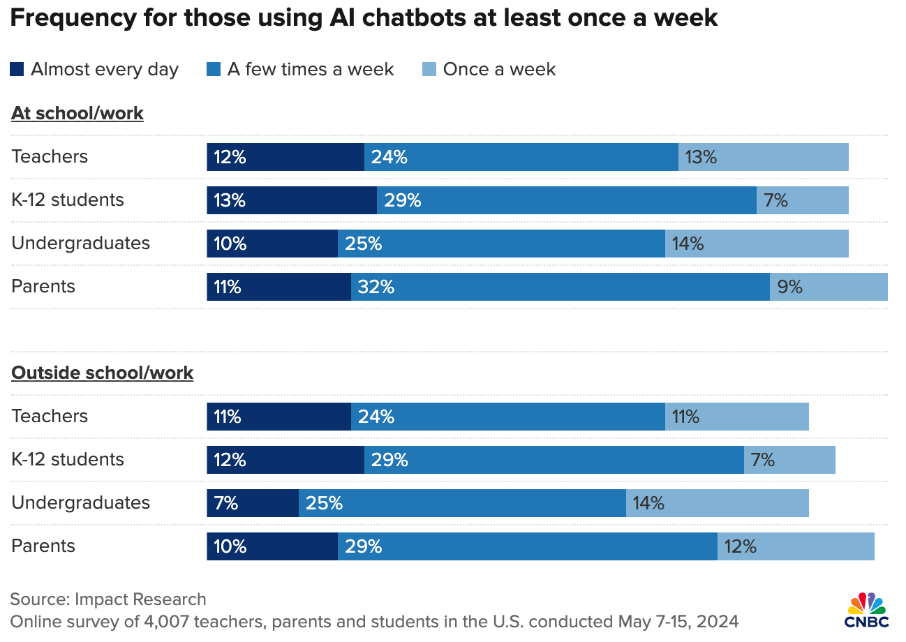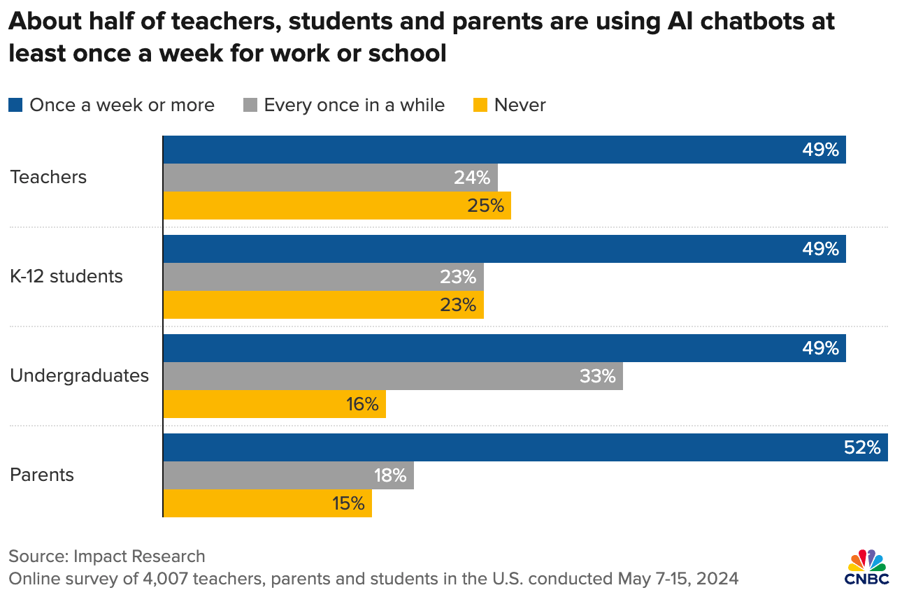 Nutzung von KI bei Lehrenden, Studierenden und Schüler:innen in USA sehr hoch