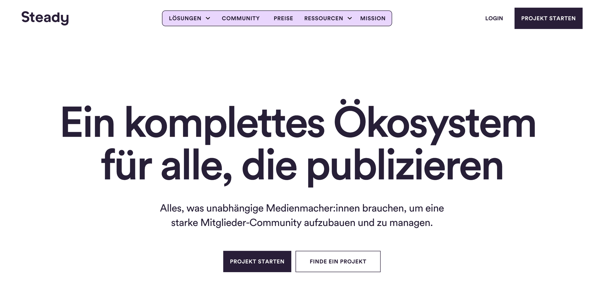 Steady hat einen großen Vorteil. Als deutsches Unternehmen haben sie viele deutsche Creators und Medienunternehmen gewonnen und damit auf der anderen Seite auch deren Unterstützer:innen bekommen. (Dazu zählen Uebermedien, Perlentaucher, Social Media Watchblog etc.)